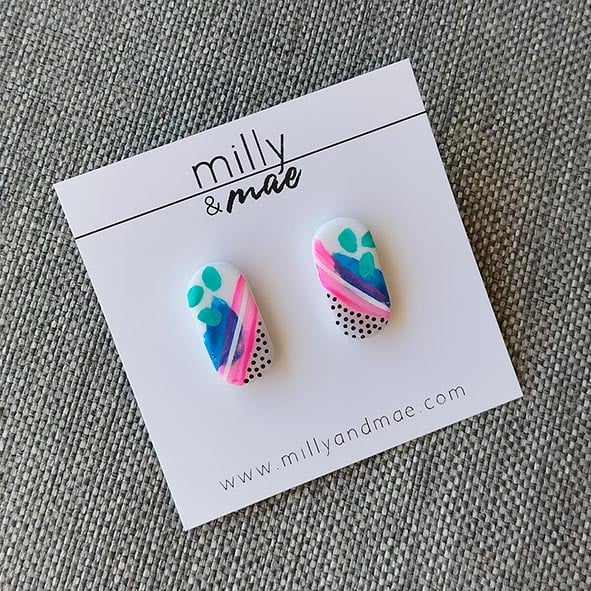 ARTSCAPE earrings are handpainted with acrylics onto clay and sealed with love and care, to ensure your mini artwork doesn't budge.